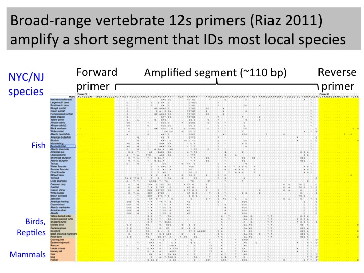 Thomsen PF, Kielgast J, Iversen LL, Moller PR, Rasmussen M, Willerslev E (2012) Detection of diverse marine fish fauna using environmental DNA from seawater samples. PLOS ONE 7:e41732 (open access link)